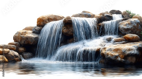 © SamsuAI, Fototapeta premium Waterfall Flowing Over Rocks Isolated on White Background