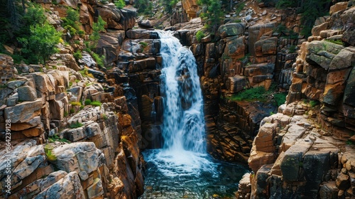 Obraz premium Waterfall Flowing Through Rocky Canyons