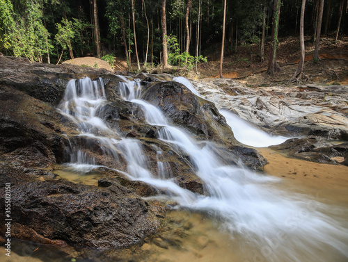 Fototapeta premium Waterfall found in tropical rainforest in malaysia