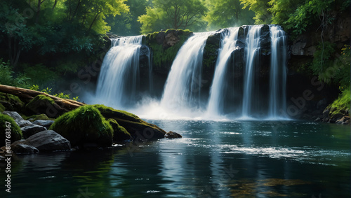 Fototapeta premium waterfall in a jungle. The waterfall is cascading over a cliff into a pool of water