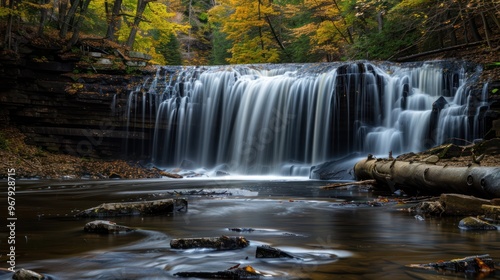© d-her, Fototapeta premium Waterfall in Autumn Forest