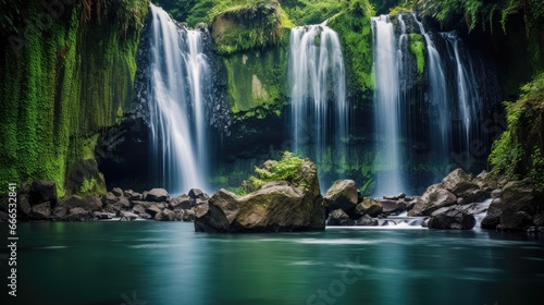 © tonstock, Obraz premium Waterfall in autumn forest background, Generative AI
