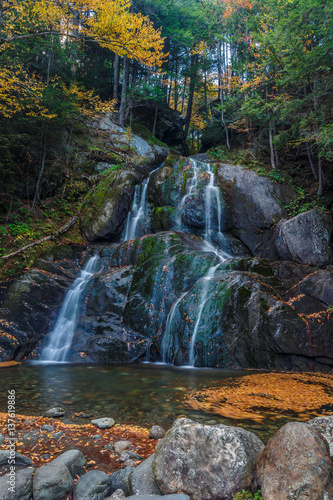 © Quattrophotography, Obraz premium Waterfall in autumn with yellow leaves and silky water