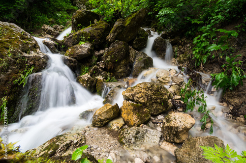 © gumbao, Fototapeta premium Waterfall in Cherek gorge in the Caucasus mountains in Russia