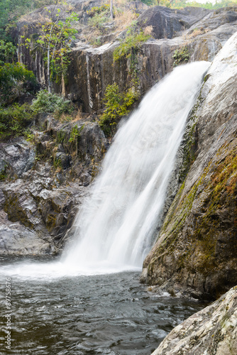 © Eakkaluk, Obraz premium Waterfall in deep rain forest.