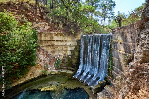 Fototapeta premium Waterfall in Epta piges park at Rhodes island, Greece