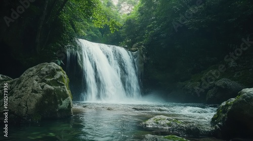 © ellisa_studio, Fototapeta premium Waterfall in Lush Forest
