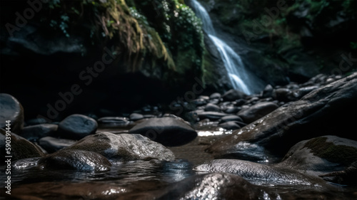 © Marcus Jacobi, Fototapeta premium waterfall in nature for product presentation and advertising. Generative AI