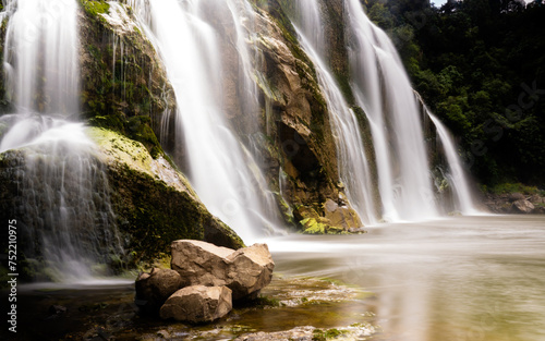 © Peter, Fototapeta premium waterfall in New Zealand, long exposure with rock in foreground