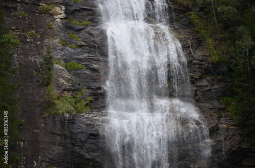 Obraz premium Waterfall in the Austrian Alps. Mountain and forest landscape.