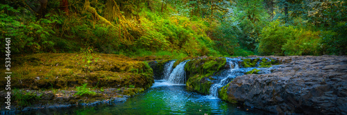 © Naya Na, Obraz premium Waterfall in the autumn rainforest of Silver Falls State Park, Oregon