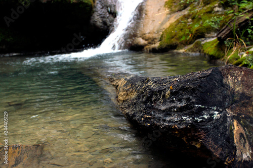 © Anna, Fototapeta premium waterfall in the forest and fallen tree