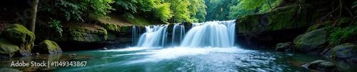© Withun, Fototapeta premium Waterfall in the forest background with moving water and foam, natural scenery, water effects, serene atmosphere