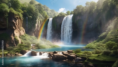 Fototapeta premium waterfall in the forest Nature's Majesty The Power of the Waterfall