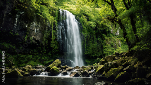 © Shades3d, Fototapeta premium Waterfall in the Jungle. Generative Ai