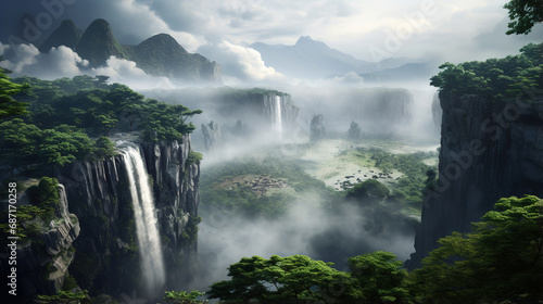 © Shades3d, Fototapeta premium Waterfall in the Jungle. Generative Ai