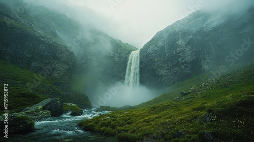 © Johnny, Fototapeta premium Waterfall in the middle of the forest.