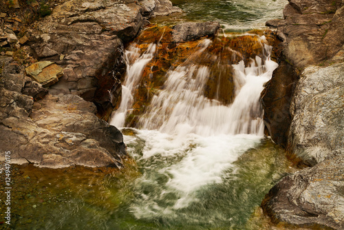 © SimmyN, Naklejka premium waterfall in the mountains of Watertown national park Canada