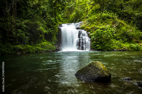 Fototapeta premium Waterfall landscape. Beautiful hidden Canging waterfall in tropical jungle in...