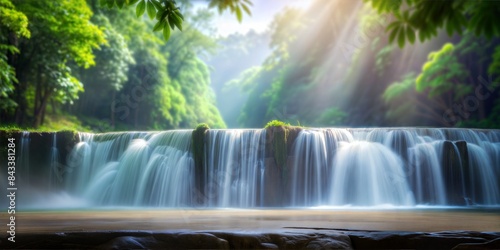 Obraz premium Waterfall Mist Blur Background: A blur background that captures the mist of a waterfall, adding a sense of freshness to product advertising.