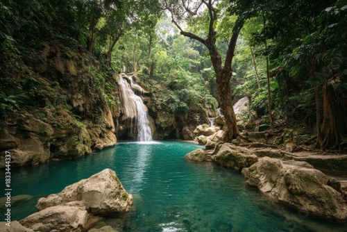 © Sandu, Naklejka premium Waterfall Paradise in Tropical Forest