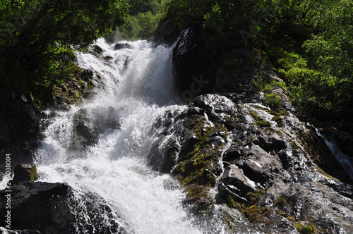Naklejka premium Waterfall scenes in mountains, national park Dombai, Caucasus, Russia, Europe