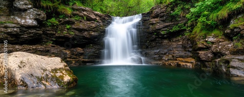 Fototapeta premium Waterfall scenes nature idea. A serene waterfall cascades into a tranquil...