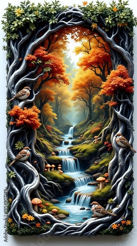 © CIZORTWIST , Obraz premium Waterfall wall decor background