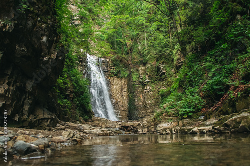 Fototapeta premium Waterfall with a lake among rocks and forest