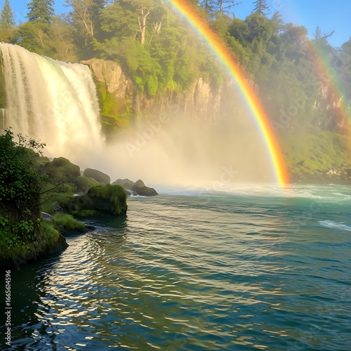 © Jumali, Fototapeta premium Waterfall with vibrant rainbow