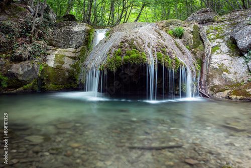 © Andrey, Fototapeta premium Waterfalls and rapids on the Ulu-Uzen River in the Crimean Mountains