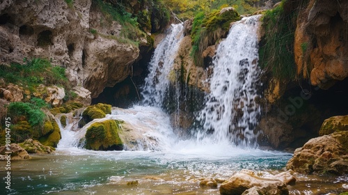© wicha, Obraz premium Waterfalls are created through the erosion of rock layers over time.