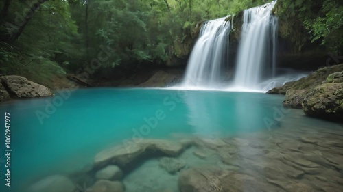Obraz premium Waterfalls cascading into a hidden turquoise pool