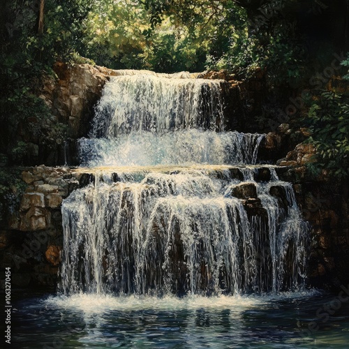© Visoth, Obraz premium Waterfalls cascading into deep pools