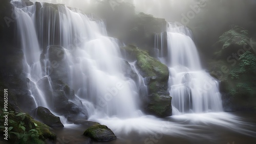 Obraz premium Waterfalls: Cascading waterfalls, captured in a flowing, almost dreamlike...