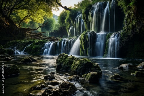 © Sidewaypics, Obraz premium Waterfalls - Generative AI