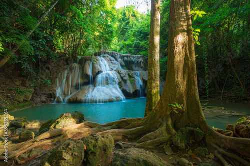 Naklejka premium Waterfalls in the tropical rain forest call is Huay Mae Khamin Waterfall , Kanchanaburi Provice , Thailand