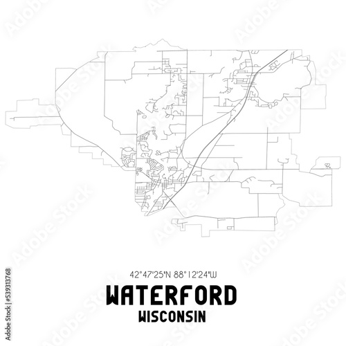 Naklejka premium Waterford Wisconsin. US street map with black and white lines.
