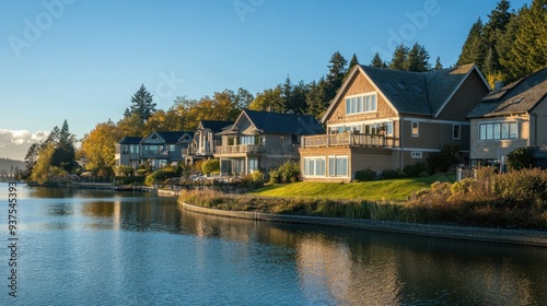 © akun, Obraz premium Waterfront Homes in a Serene Setting