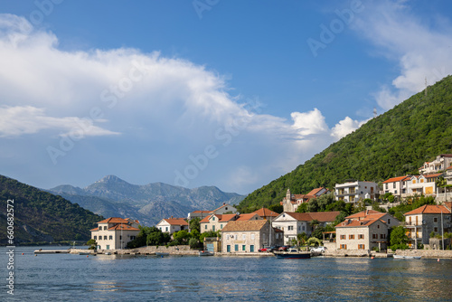 © Weax, Fototapeta premium Waterfront panorama of historic town Lepetani in Montenegro