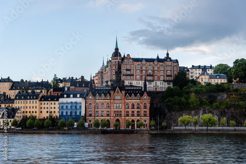 © jjfarq, Fototapeta premium Waterfront view Ugglan quarter in Stockholm, Sweden.