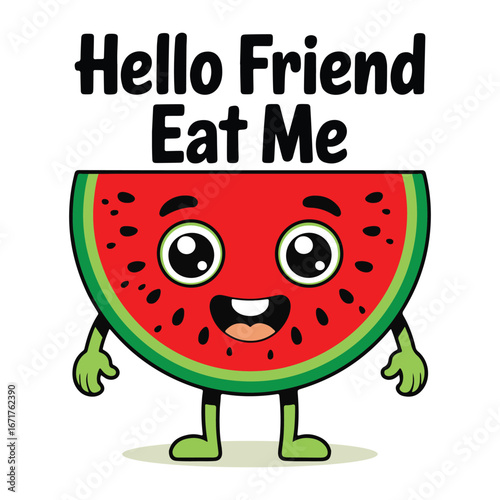© Nirjhara, Obraz premium Watermelon fruit groovy cartoon character solid white background vector