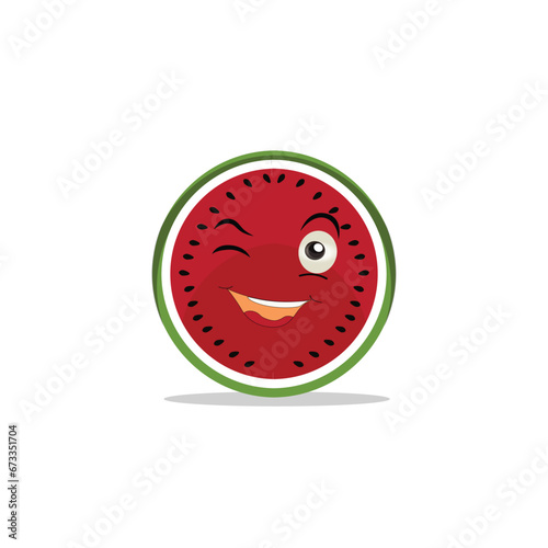 © Miky, Fototapeta premium Watermelon slice character with funny face. Happy cute cartoon watermelon emoji set. Healthy vegetarian food character vector illustration