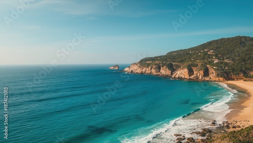 © TheWaterMeloonProjec, Fototapeta premium Watsons Bay coastal landscape, rugged shoreline for UI backdrop, erosion vulnerability, summer season