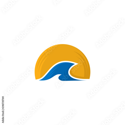 Obraz premium Wave and Sun sign vector design logo template