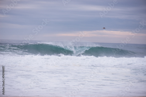 Fototapeta premium Wave crashing on a coast in Nazare, Portugal.