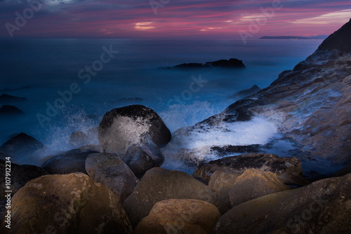 Obraz premium Wave crashing on rocks creates large spray