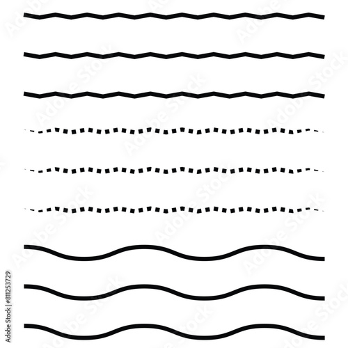 Fototapeta premium Wave line and wavy zigzag pattern lines. Vector black underlines, smooth end...
