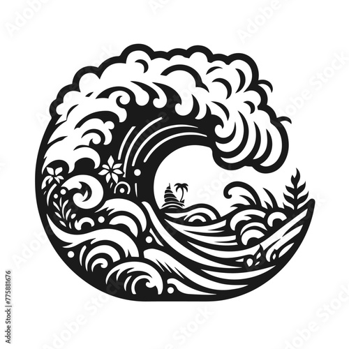 © Awais, Naklejka premium Wave logo. Graphic symbols of ocean or flowing sea water stylized for business identity vector.