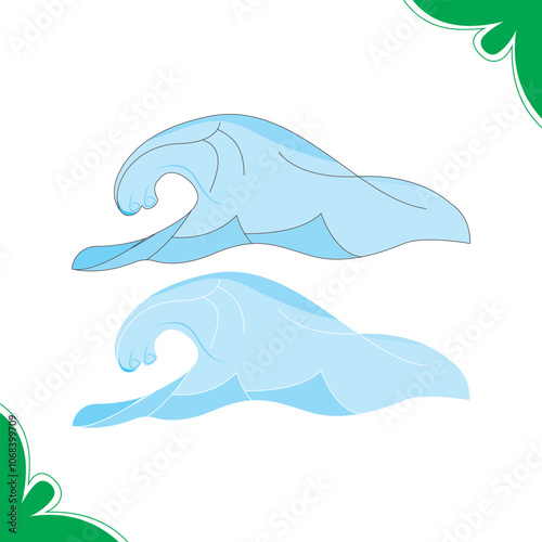 © shamim, Naklejka premium Wave. Natural strong disaster with fog and tsunami waves from ocean with house, mountains, palms and lighthouse. Earthquake tsunami wave